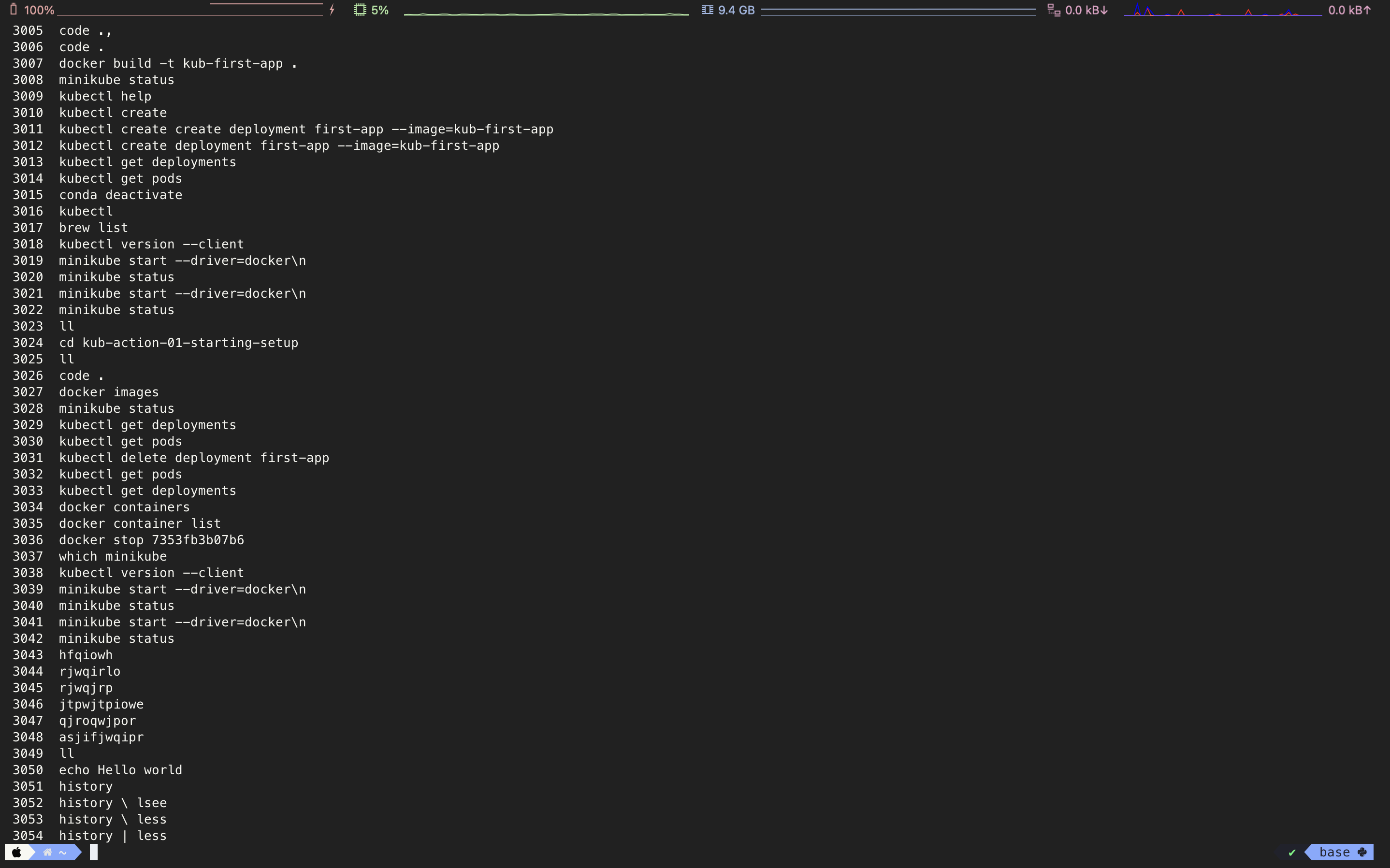 이를 방향키를 통해 일일이 찾아내는 것은 굉장히 힘들 것이다. 이런 상황에서 사용할 수 있는 터미널 명령어가 history 명령어이다. 사용법은 간단하다 다음을 통해 알아보자.